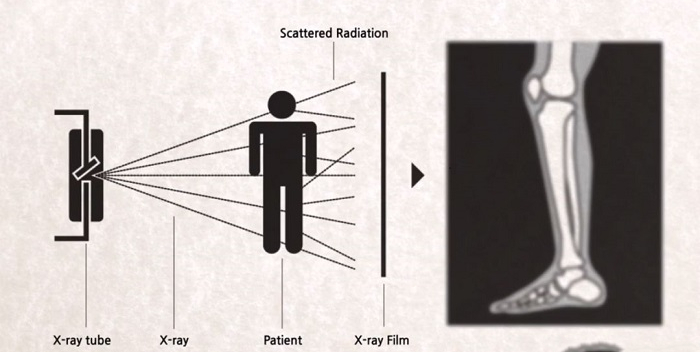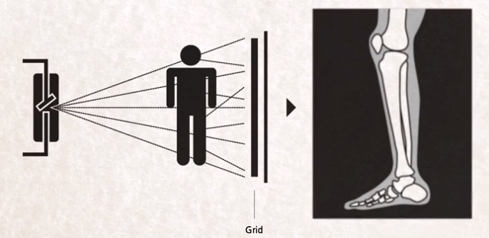 通過(guò)固定半徑的多條柵條過(guò)濾散射線,將這一部分散亂的射線過(guò)濾掉,盡量只保留筆直射入的射線,從而提高成像清晰度。